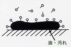 | ↑親油基 (この部分が油や汚れを被洗浄物 から引き剥す) |